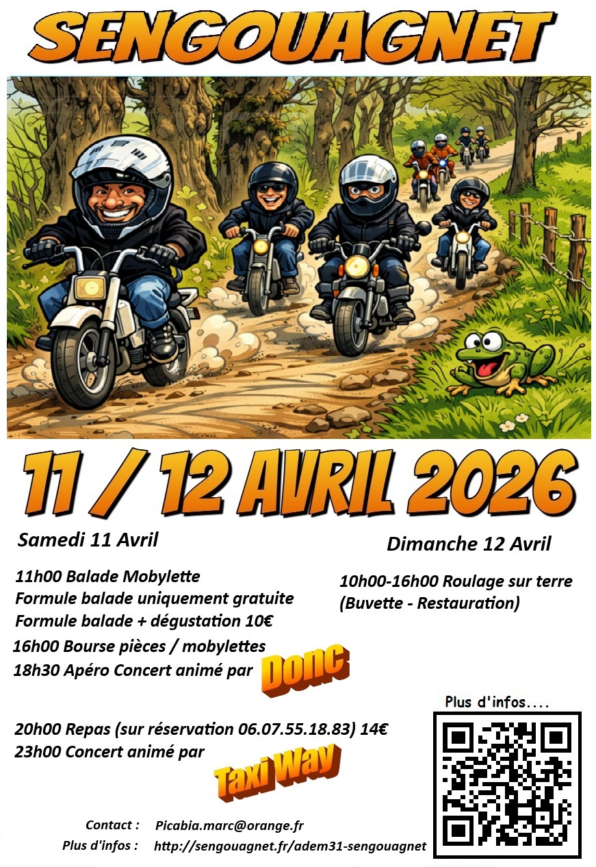 16h00: Bourse de pièces de mobylette (Stands réservés aux adhérents, inscription par mail à l’adresse suivante : adem643140@gmail.com).
