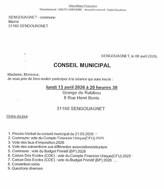Conseil Municipal du 13/04/2026